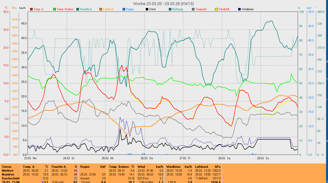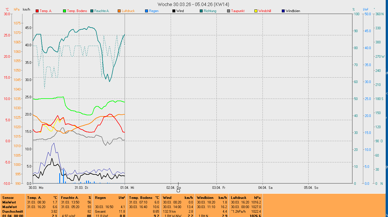 | Die dargestellten Werte repräsentieren die Daten des aktuellen Tages! Der Luftdruck ist auf Meereshöhe bezogen! |